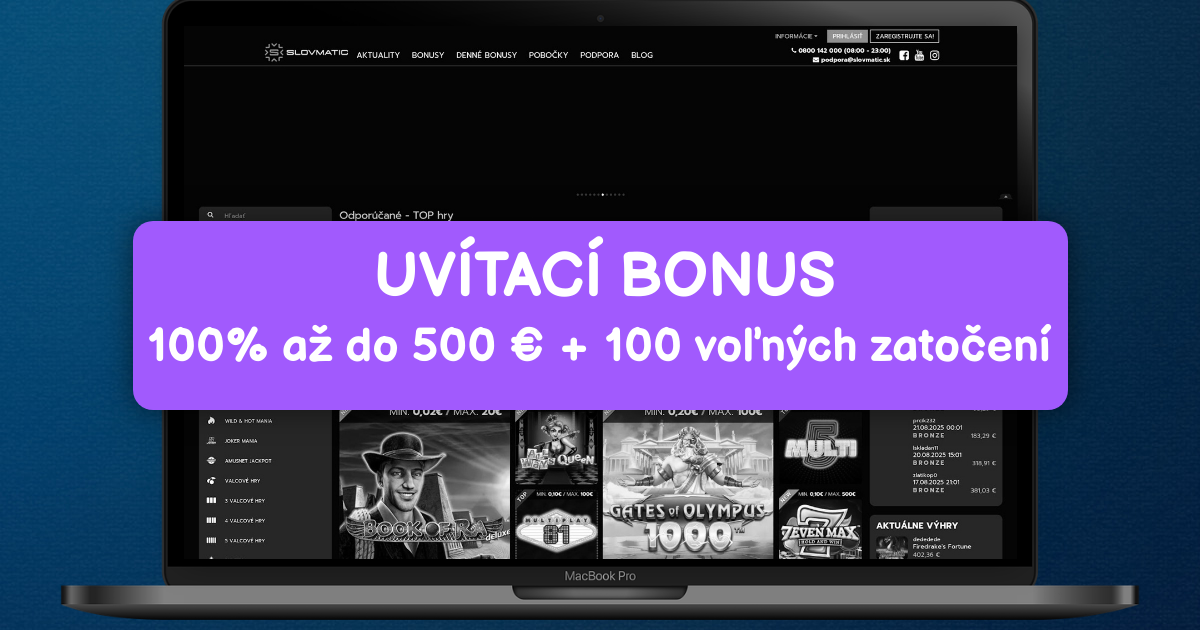 Slovmatic ako online kasíno na Slovensku ponúka vysoké vstupné bonusy, voľné zatočenia a turnaje. Hráči získajú peniaze a spiny po rýchlej registrácii na oficiálnej stránke.